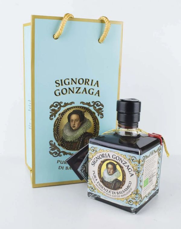 - The appearance, which clearly stands out from the rest of the Acetaia San Giacomo line with a beautiful hand-applied embossed seventeenth-century patterned label , the 200 ml cubic bottle and the pendant tied and fixed with red sealing wax by hand provide a further explanation of the product .